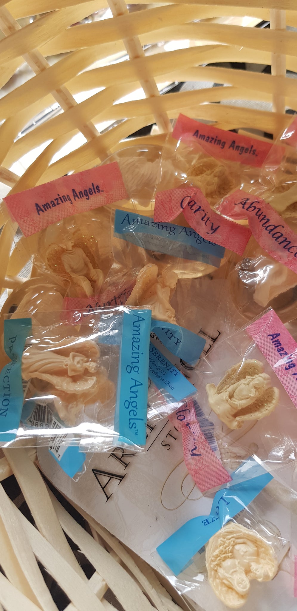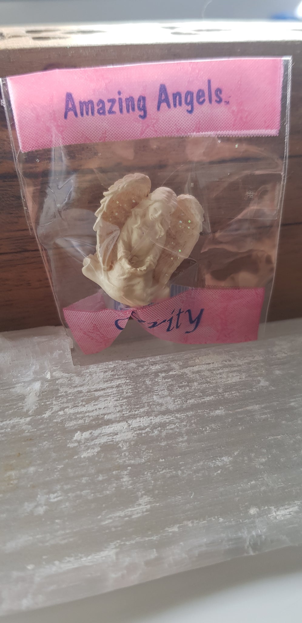These mini angels make a thoughtful token gift. They are tiny angels with specs of glitter in a mini see through package bag. On the bag it reads different descriptions of what someone might need to make them smile and show you are thinking of them.