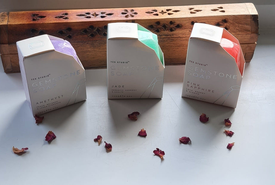 These chunky Gemstone Soaps promote healing for the body, mind and soul – geometric in shape and Vegan-friendly, these soaps will make a lovely gift.
