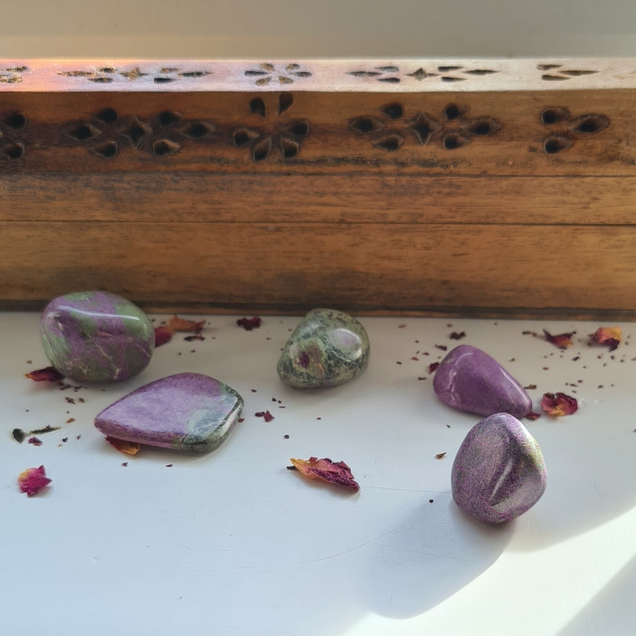 Atlantasite is a combo of Stichtite and Serpentine. It blends the properties of bringing good luck as well as heightening intuition and may stimulate visionary experiences. It brings high loving vibrational energy.