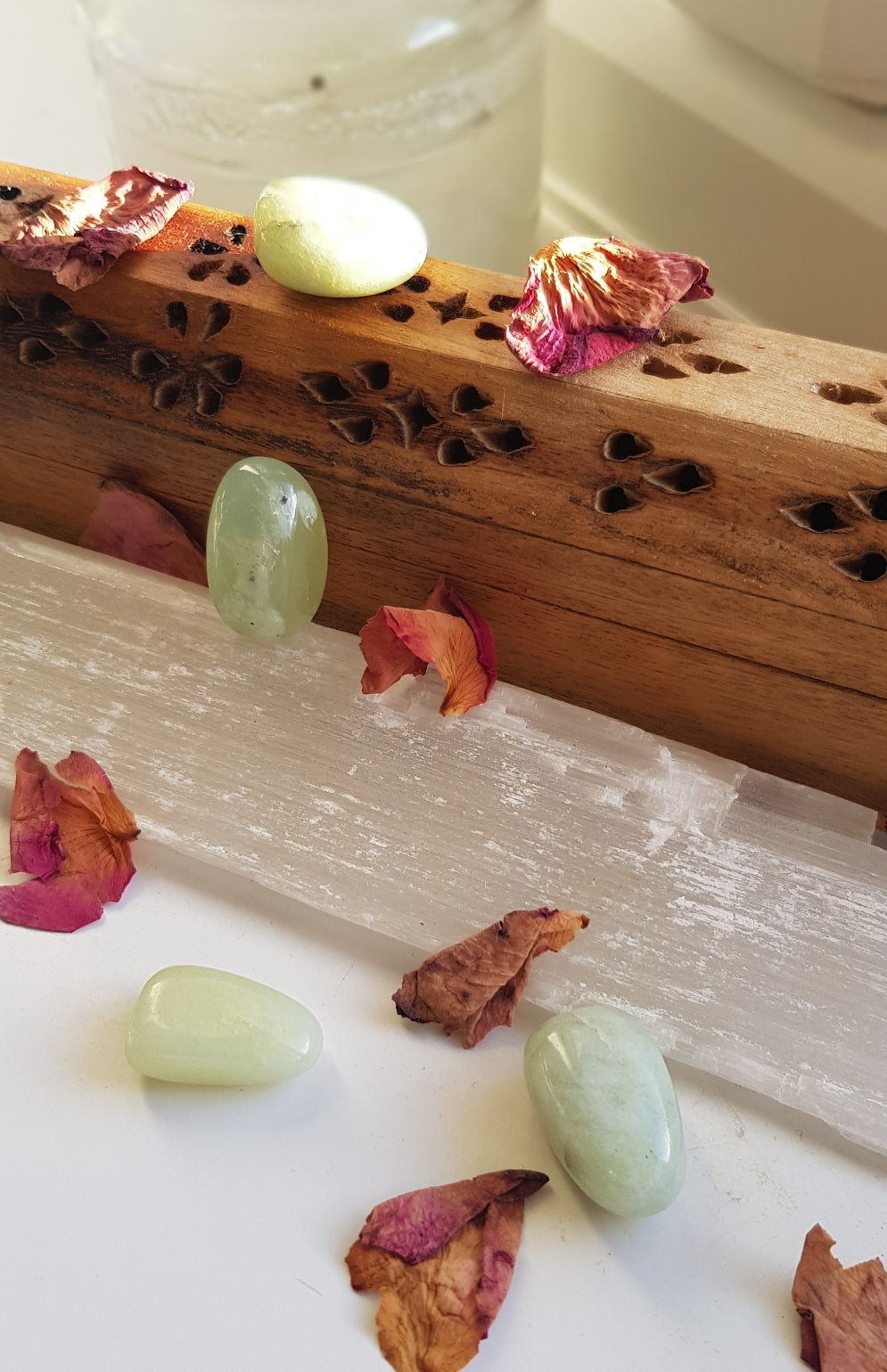 Jade is known in many different types. There is olive jade, white jade, green jade, serpentine jade, new Jade etc. It brings good luck. It is a nature stone that gives us earth energy. It uplifts and soothes the heart and brings abundance. It strengthens friendships and soothes the heart!