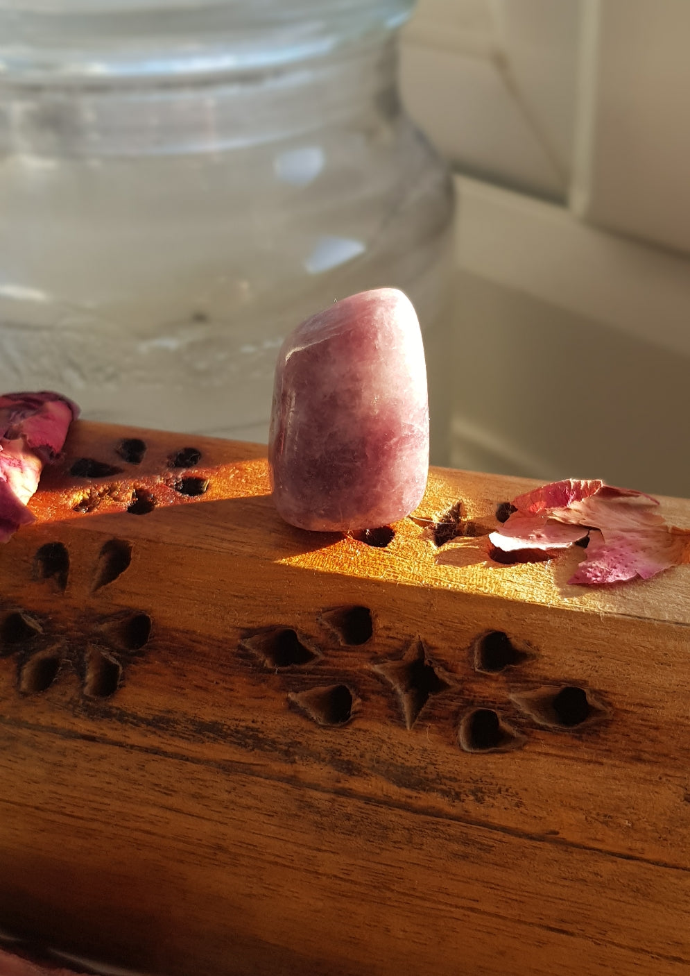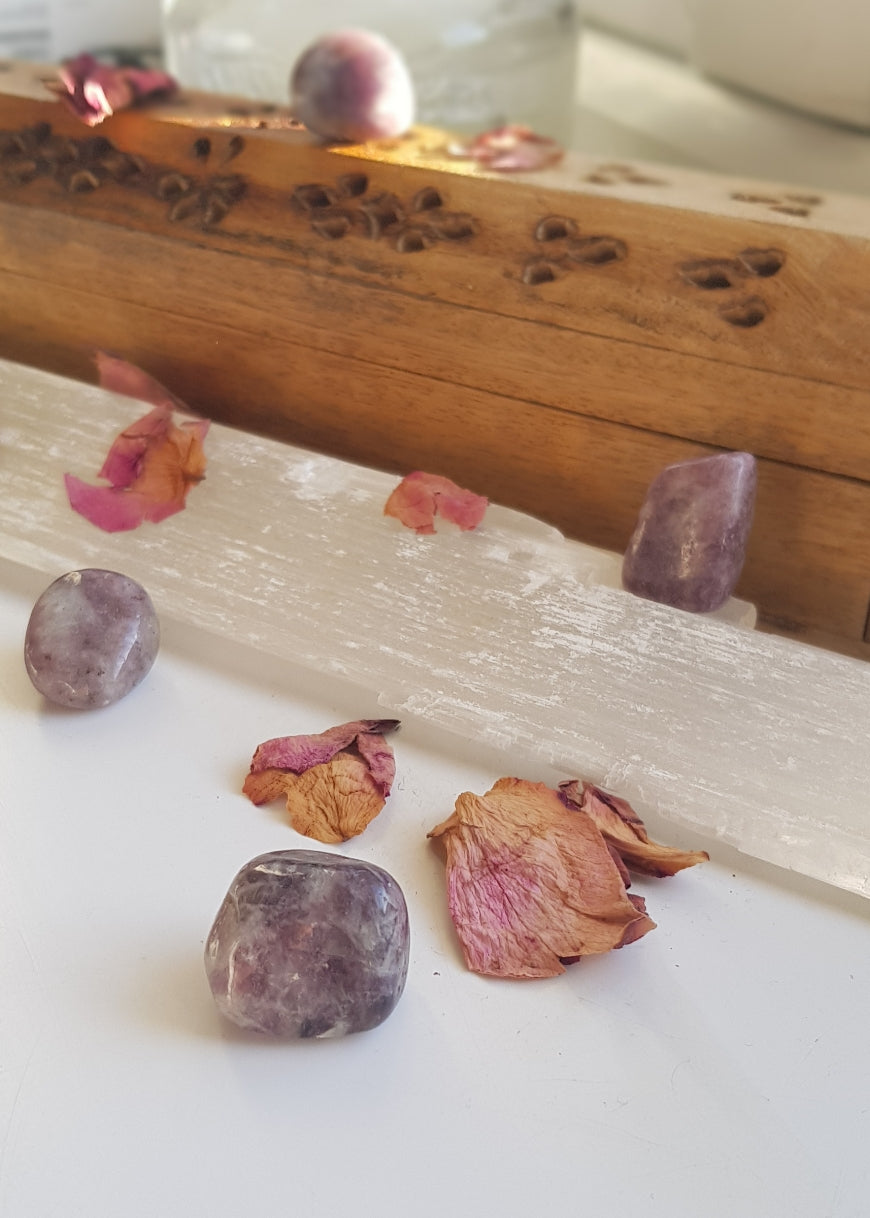 Lepidolite is a crystal that contains Lithium. Lithium which can be found in anti depressants and helps balance moods/bipolar disorder. This means Lepidolite can relax us and calm our minds as well as keeping us centred. It is a crystal of transition and it encourages change.